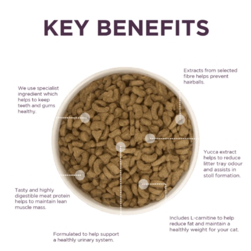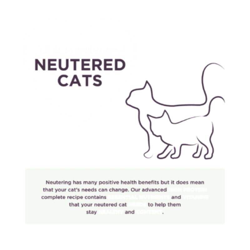 Burgess neutered cat chicken complete food for all ages 1.5 kg Why a Neutered cat food? While neutering has many positive benefits, it does mean that your kitten or cat’s needs can change. Neutered cats can be more at risk of developing urinary tract infections. They are also more likely to stay closer to home or spend more time in their home. This means they have a higher chance of weight gain and hairballs. A specialised diet helps to support all of these additional needs. Why Burgess Neutered cat? Our advanced high protein recipe contains the essential nutrients and vitamins that your neutered cat needs to help them stay healthy and content. We recommend your neutered cat should be fed an adapted diet: High in tasty and digestible meat protein to help maintain lean muscle mass *Added L-Carnitine to help maintain a healthy weight Formulated to support a healthy urinary system We use a specialist ingredient to help teeth and gum health The fibre in our recipe helps to prevent hairballs Added yucca extract helps to reduce litter tray odours and helps with stool formation Introduce Burgess Neutered Cat to your cat by gradually mixing in the new food with the old over a period of 7-10 days until the new food completely replaces the old diet Always ensure you are monitoring your cats weight to ensure a healthy weight. You should take treats into account when working out daily feeding requirements. Always ensure fresh clean water is available for your cat. Analytical ConstituentsCrude Protein 37.9%, Crude Fat 10.0%, Crude Ash 9%, Crude Fibre 3.35%, Calcium 1.4%, Phosphorus 1.2%. CompositionPoultry 56% (Poultry meal 41% (min 26% Chicken), hydrolysed poultry powder 5%, turkey meal 4%, poultry fat 3%, chicken digest 2.5%), Rice, Wheat, Cellulose (4%), Brewer’s Yeast (2.5%), Fish Meal, Dried Egg, Dried Cranberry (0.5%), Minerals, Fructooligosaccharides (0.3%), Extract of Yucca Schidigera (0.05%)
